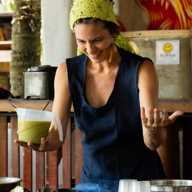 Podendo ser online ou presencial, o Workshop Cozinhaterapia é feito para públicos diversos, podendo ser uma experiência da preparação do Néctar de Luz - Suco Luz e Regeneração: uma receita que nutre, fortalece e renova a energia vital, do Leite da Terra: um encontro do corpo com a essência viva do solo e do céu ou da Papa Croc Croc: reconexão da terra, dos rios e oceanos, entre outras receitas!